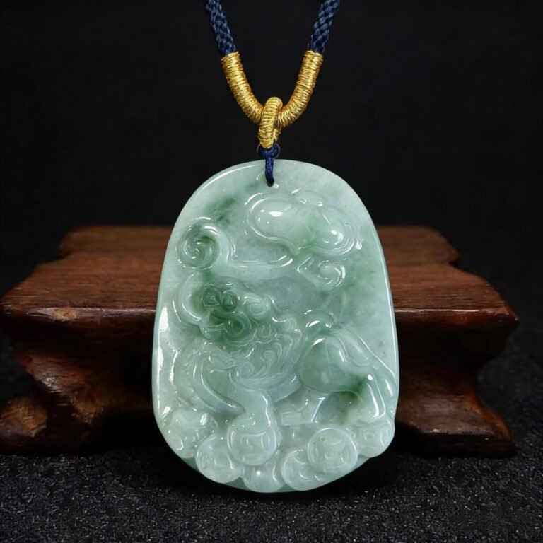 Natural Jadeite Qilin Pendant | Lucky Unicorn-Like Gemstone Amulet for Prosperity & Protection