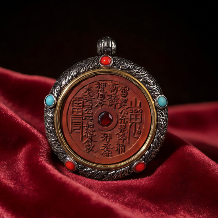 Thunderbolt Jujube Wood Silver Mounted Mountain God Lucky Coin Pendant, Inlaid Crystal Drop, Reverse Nine-Palace Eight-Di Necklace Ornament for Men and Women