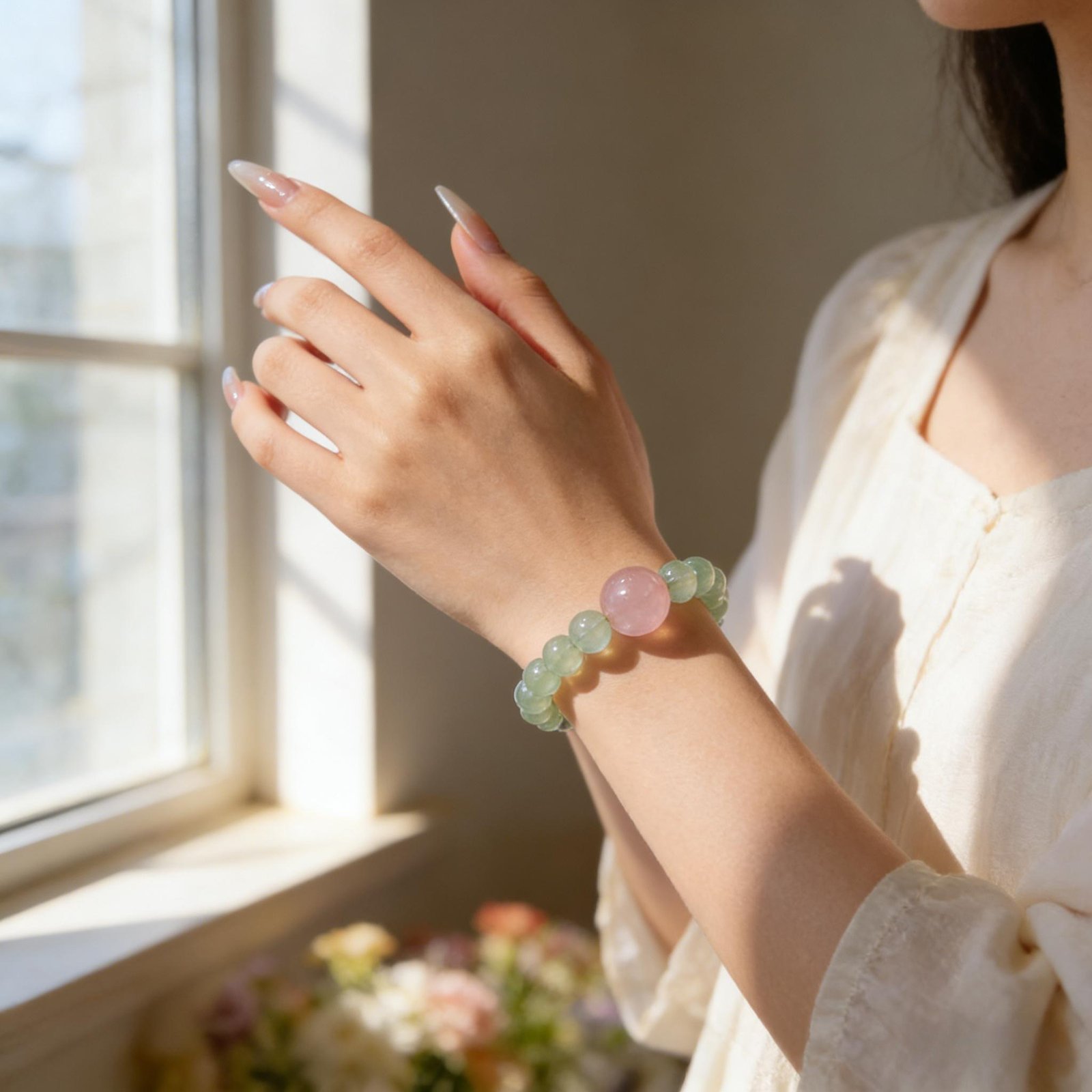 - Prosperity & Career Momentum: Prehnite attracts new opportunities and strengthens willpower to break through career bottlenecks, while rose quartz builds trust to foster client loyalty and successful collaborations — perfect for entrepreneurs and those seeking promotion.