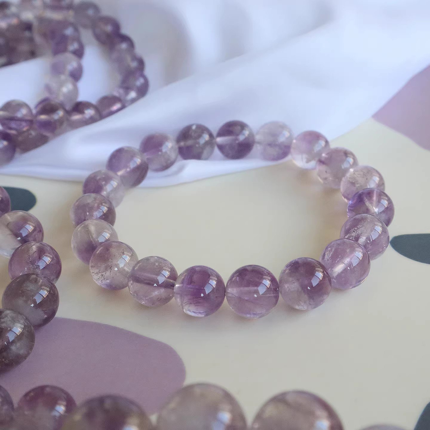 Lavender Amethyst Beaded Bracelet | Third Eye Chakra Crystal for Calm, Intuition & Spiritual Clarity