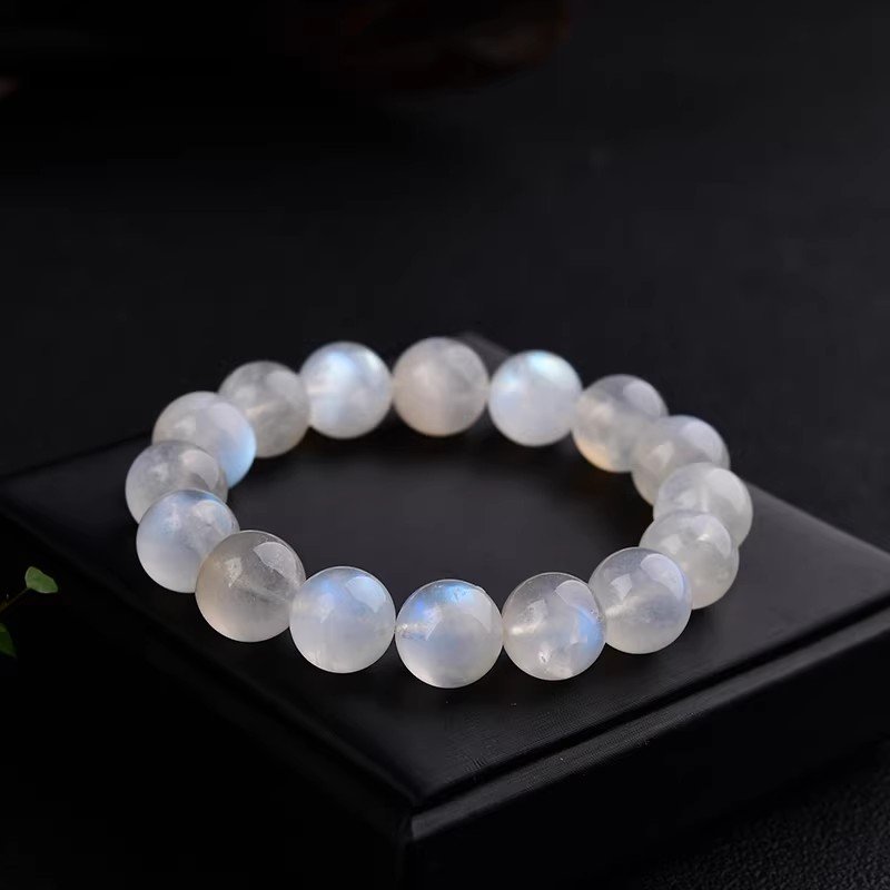 This 9mm stretch-fit bracelet features Grade A Blue Moonstone (the “Stone of Ethereal Serenity”). Translucent beads with subtle blue lunar glow soothe anxiety, boost intuition, and add delicate ethereal style. Fits 14–18cm wrists; 100% natural, one-of-a-kind luminous softness.