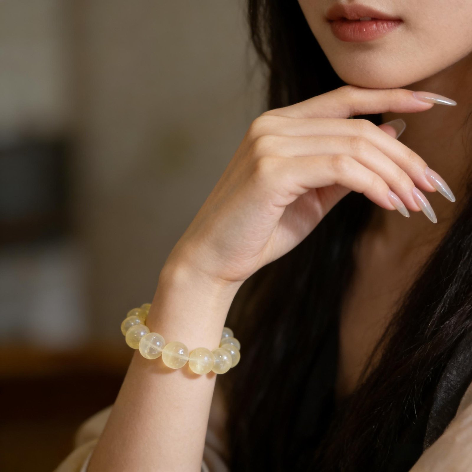 Natural Fluorescent Lemon Quartz Beaded Bracelet | Solar Plexus Chakra Gem for Joy, Vitality & Bright Energy