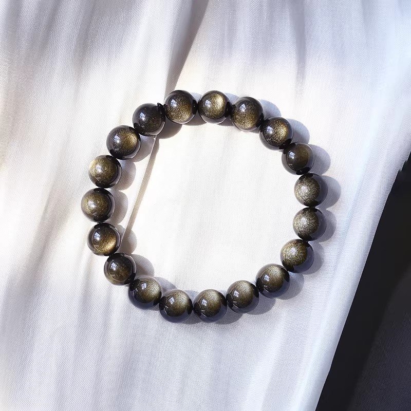 Natural Gold Sheen Obsidian Beaded Bracelet | Root Chakra Crystal for Protection, Abundance & Bold Luminous Style