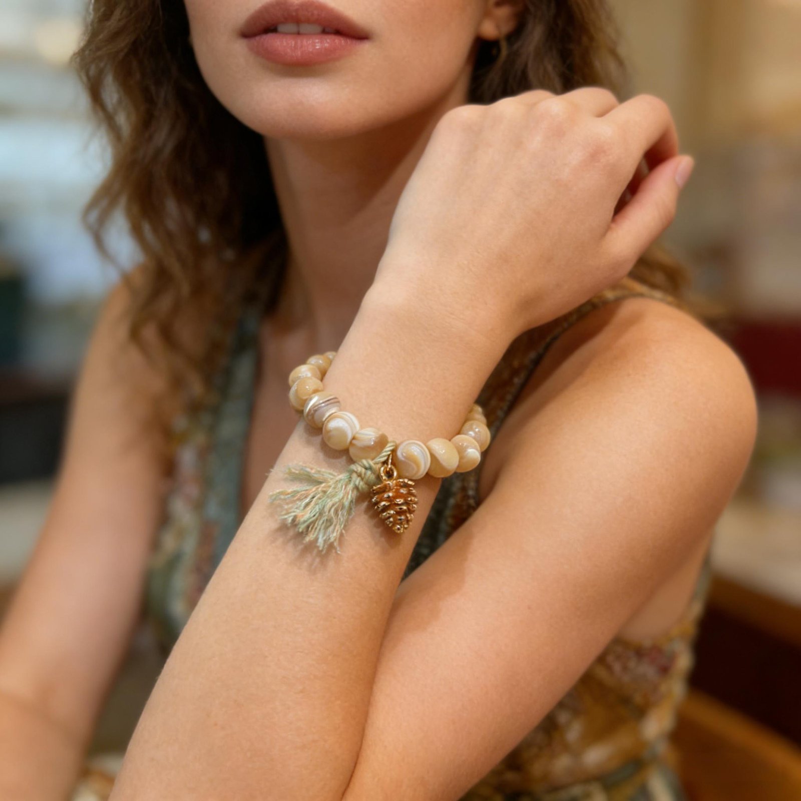 - Item Type: Beaded Bracelet with Pinecone Charm & Tassel