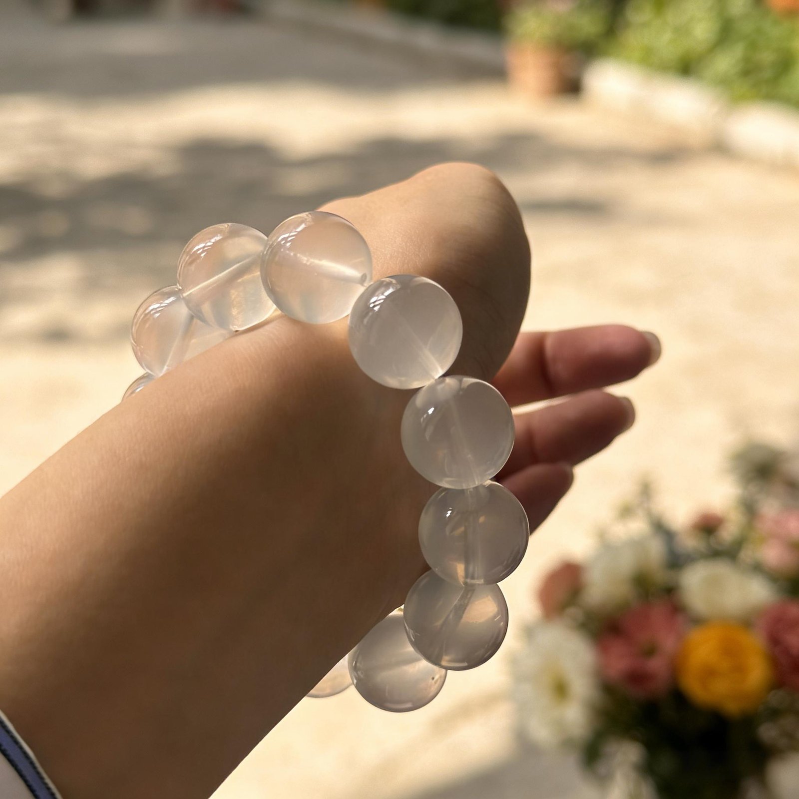 Natural Milky White Quartz Beaded Bracelet | Pure Calm Gem for Soft Minimalist Style