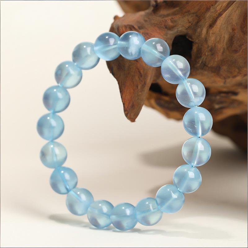 Natural Blue Moonstone Beaded Bracelet | Lunar Calm Gem for Ethereal Blue Glow & Emotional Balance