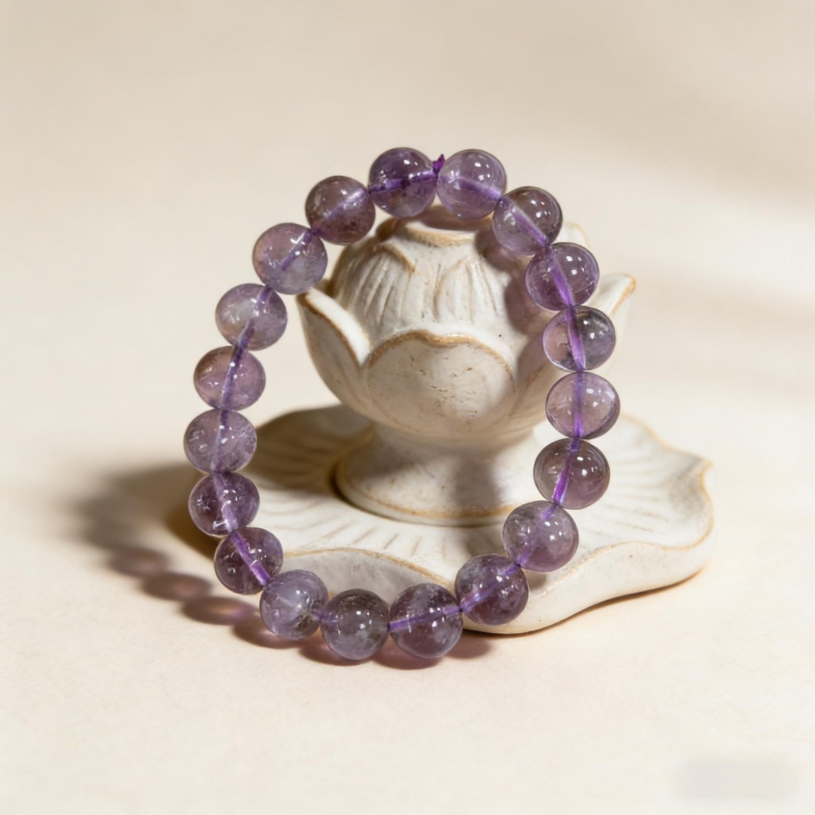 Lavender Amethyst Beaded Bracelet | Third Eye Chakra Crystal for Calm, Intuition & Spiritual Clarity