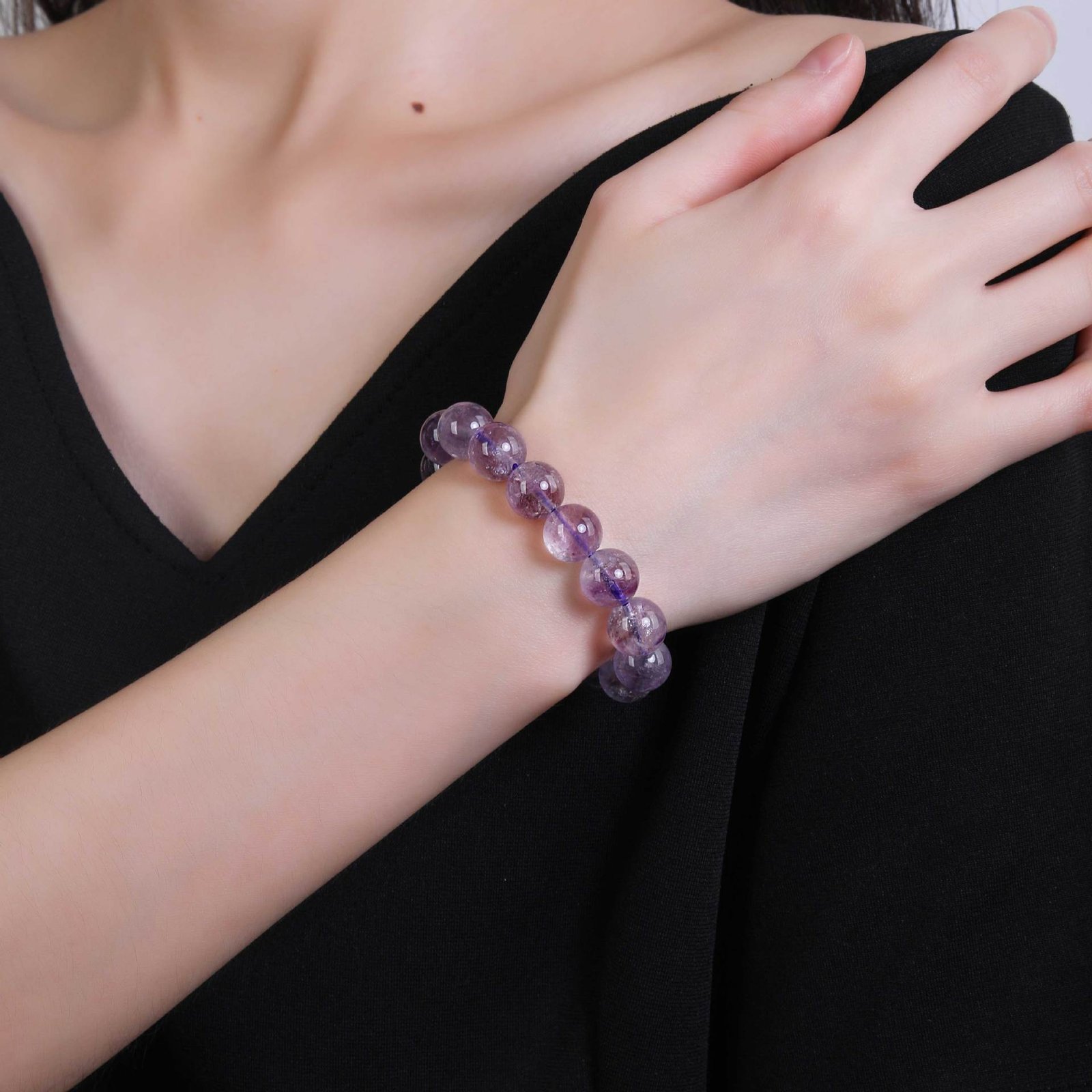 This 8–10mm stretch-fit bracelet features Grade A Purple Aurora “Nine Purple” Quartz (the “Stone of Transformation & Luck”). Translucent lavender-purple beads with subtle iridescent sheen shift stagnant energy, attract luck and abundance, and add mystical style. Fits 14–18cm wrists; 100% natural, one-of-a-kind luminous glow.
