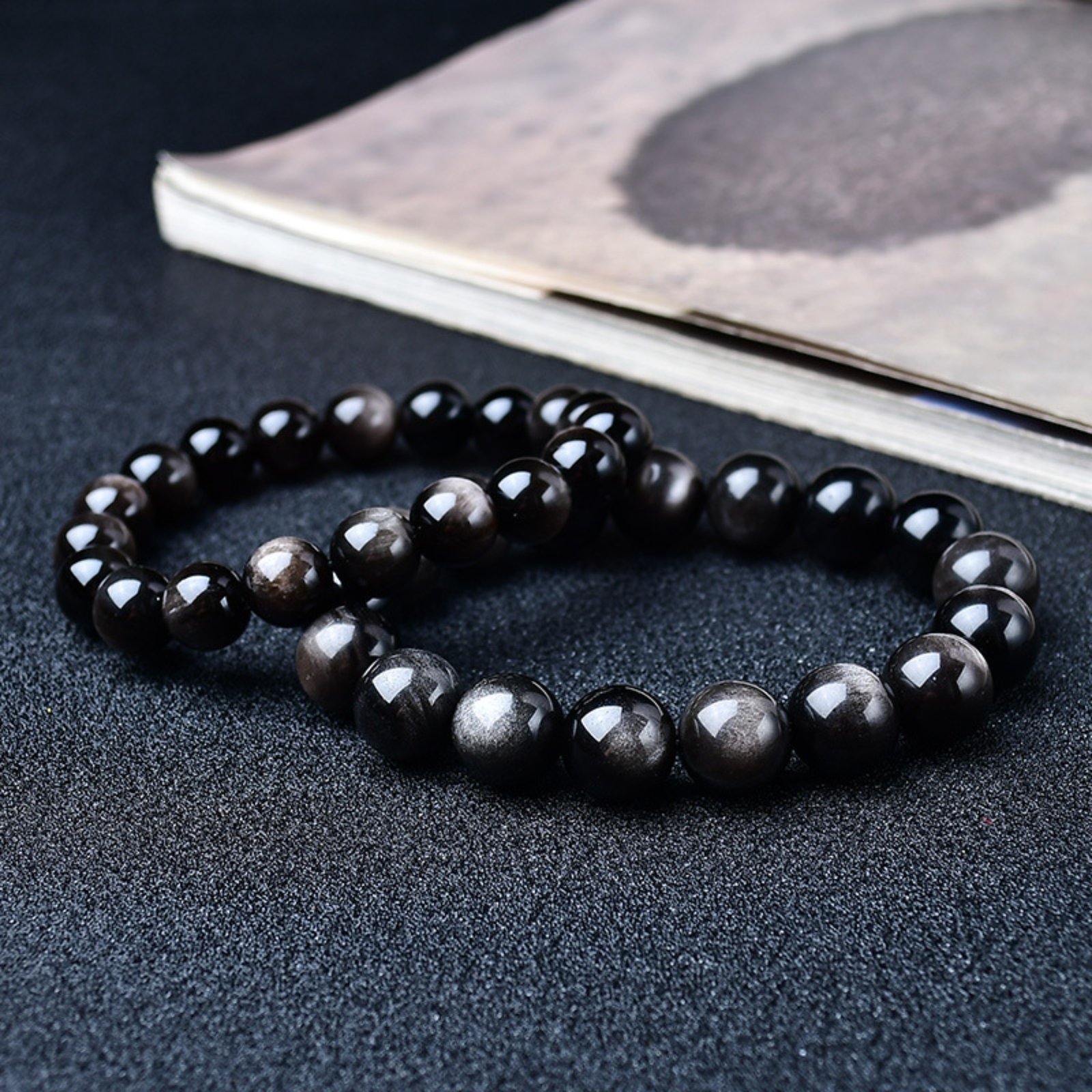 Natural Silver Sheen Obsidian Beaded Bracelet | Root Chakra Crystal for Protection, Grounding & Sleek Style