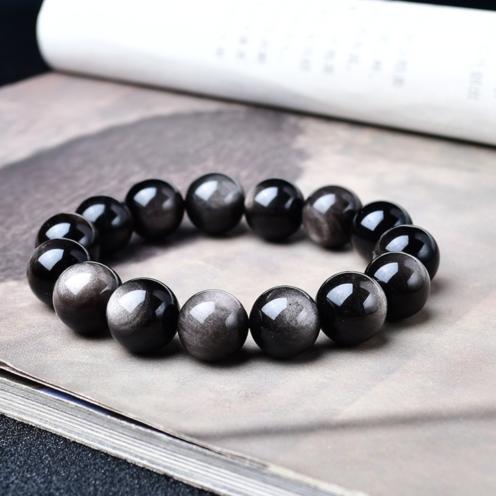 Choose 12mm/14mm — this stretch-fit bracelet features Grade A Silver Sheen Obsidian (the “Stone of Protective Grounding”). Deep black beads with vivid silver glow shield from negativity, anchor calm, and add sleek edgy style. Fits 14–18cm wrists; 100% natural, one-of-a-kind metallic sheen.