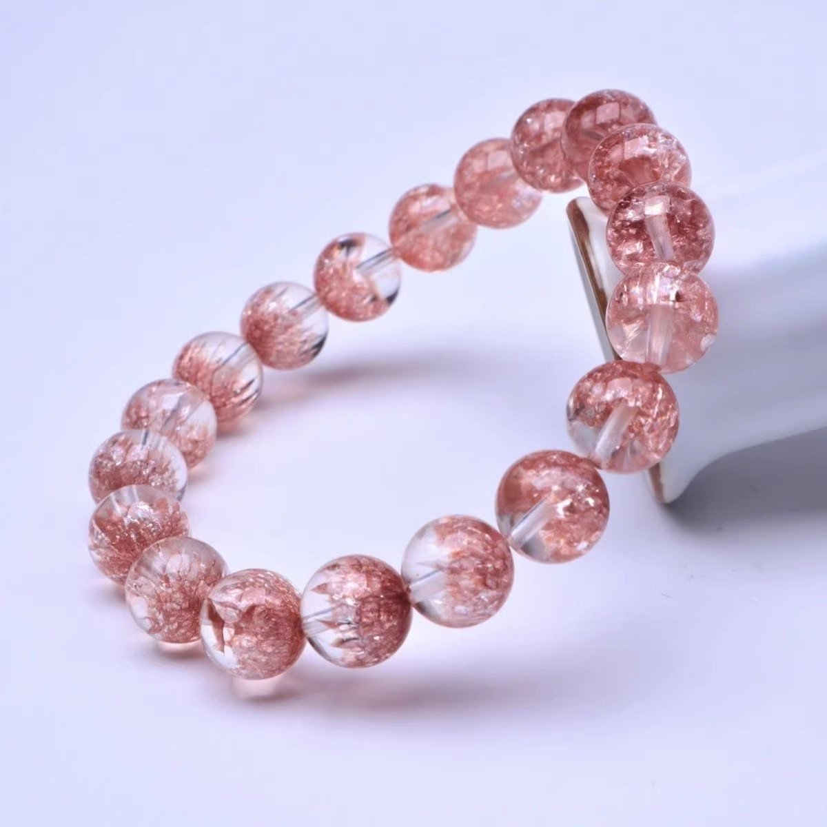 This stretch-fit bracelet features ~10mm Grade A Pink Fireworks Quartz beads—translucent pink quartz with explosive, glittering internal “firework” inclusions. Aligning with the heart chakra, it infuses daily life with vibrant positivity, soothes tension, and doubles as a eye-catching, conversation-starting accessory. Each bead’s unique shimmer (100% natural, untreated) fits 15–19cm wrists comfortably, making it a unisex pick for joy-filled style.